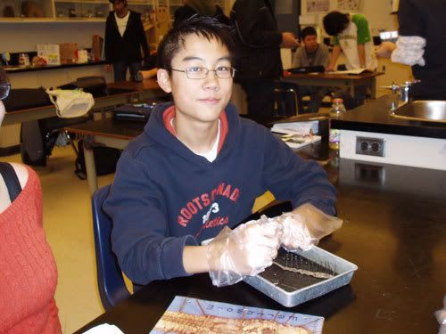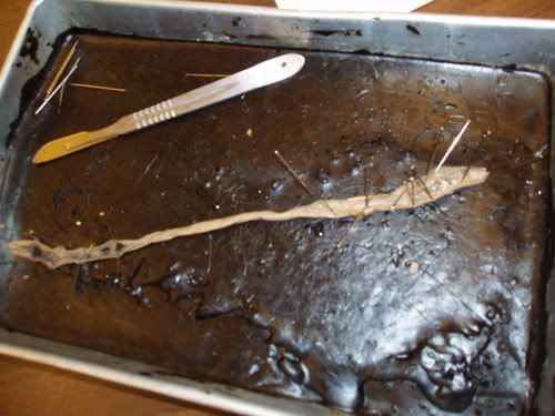 Bio, we dissected a worm. Ours didn't have a name, but it looked like we were dissecting it on top of a giant brownie.